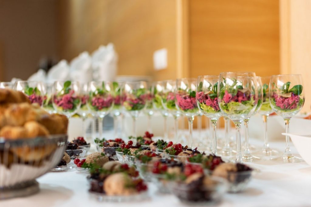 A konferenciák vendéglátása sajátos mert csak érkezéskor és szünetekben van lehetőség a vendégek kiszolgálására, az örök sláger a kávé amit adagolós termoszban készítünk be, szükségünk van sok porcelán mokkacsészére és cappuccinós csészére mokkás kanálra és teás kanálra és jó ha van néhány csomagolt tejszín kínálónk ami kis helyen elfér, mutatós és nagyon praktikus, készételeket kínálhatunk chafing-ekből ehhez szükségünk lesz tálaló eszközökre és kínálhatunk finger food-okat poharakból és tálkákból ehhez desszert evőeszközt készítünk elő.